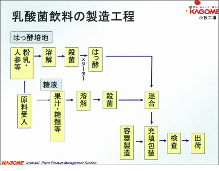 資料1 小牧工場の乳酸菌飲料の製造工程