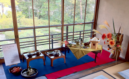 「西園寺公望氏の別邸:坐漁荘(ざぎょそう)で、観月の宴のイメージで展示をしてほしい」という依頼が学芸員の方から直接ございました。