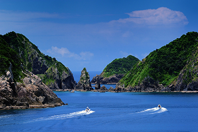 南さつま市の景勝地、輝津館展望所から見る双剣石周辺