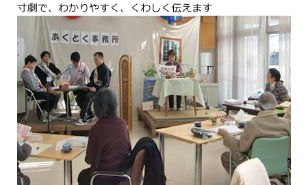 神林 やはり現場で高齢者の方たちと接していますと、講義だけでは退屈されるようなんですね。アクションあり、笑いあり、といったメリハリのある講座がよいと私は考えています。参加者にも寸劇に出ていただいています。会場が和やかになります。