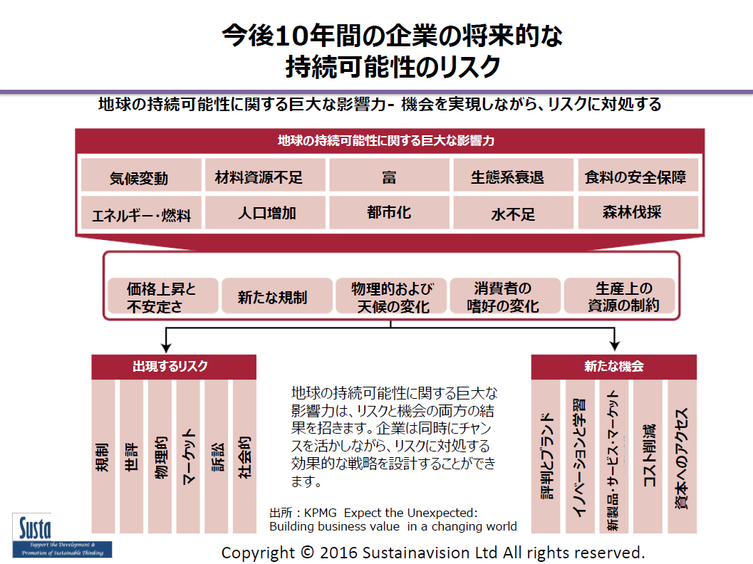 下図は、企業における今後10年間の持続可能性のリスクをまとめたものです。