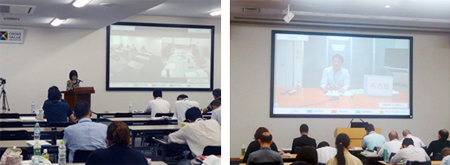 社内研修会では、講師の手づくりテキストを使っています。また、社内のテレビ会議システムを利用し、東京・大阪・福岡を中継し、参加しやすい環境整備を図っています。