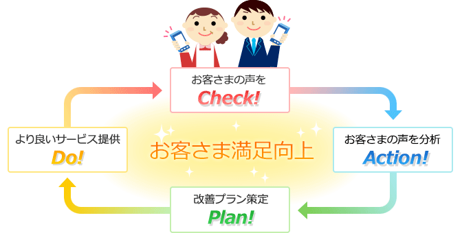 次に、お客様満足向上に向けた活動の概要をうかがった。以下の3つの段階に分かれている。