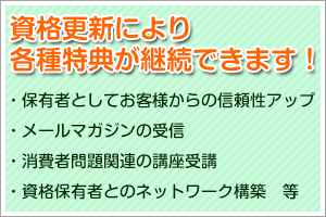 更新特典は、消費生活アドバイザーは有料で受講いただいている消費者問題関連の講座を無料で視聴いただけます。