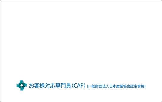 「お客様対応専門員(CAP)」資格を名刺等に表記される場合は、以下の枠内のいずれかの名称をご使用ください。