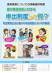 申出制度は、申出者の抱える個別のトラブルを解決することを目的としたものではありませんが、消費者と行政が一体となって、取引の公正の確立および消費者の利益を守ることを目的に、消費者などからの情報を取り入れるために設けられました。